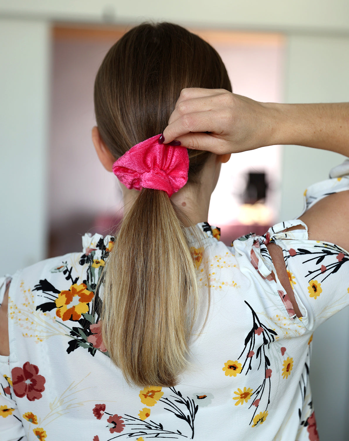 Chouchou en velours rose fluo